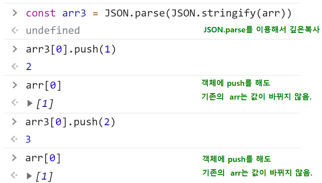 객체 안에 객체가 들어있을 경우, 깊은 복사를 이용한다.