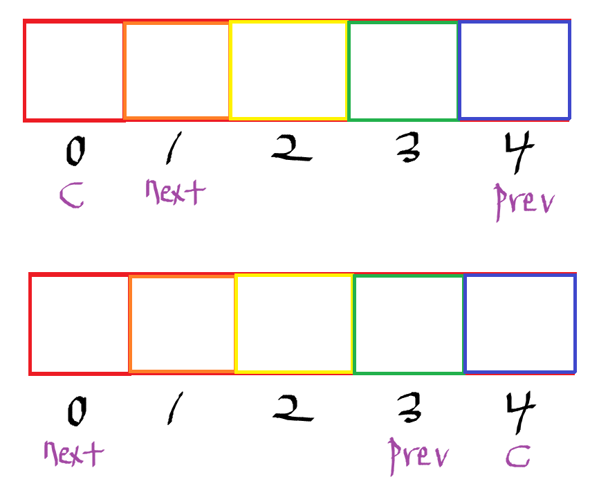 만약 현재 페이지가 전체의 마지막(-1) 일 때, next를 현재 페이지(0)에 대입하면, 캐러셀이 계속 이어진다. - 한 마디로 prev를 누를 경우에는 0 4 3 2 1 0 4 3 2 1 0