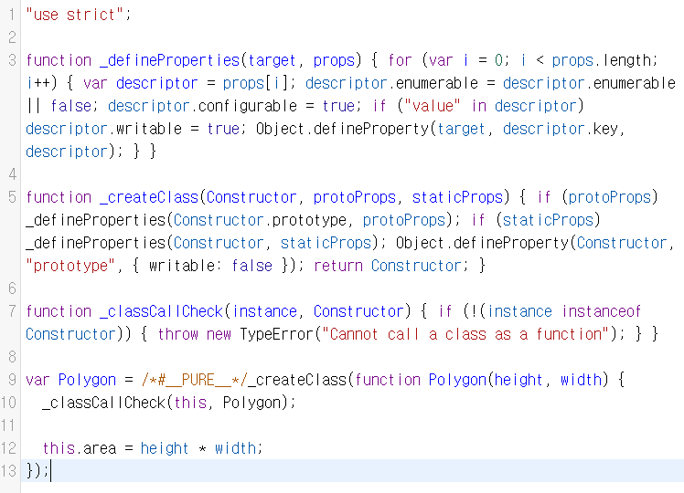 - prototype을 기반한다고 말할 수 있는 이유는 babel에서 transform을 거치지 않고, 아래의 코드를 작성하였을 때
