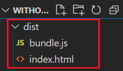 webpack을 실행해보면, dist 폴더 안에 bundle.js이 생성된 것을 볼 수 있다.