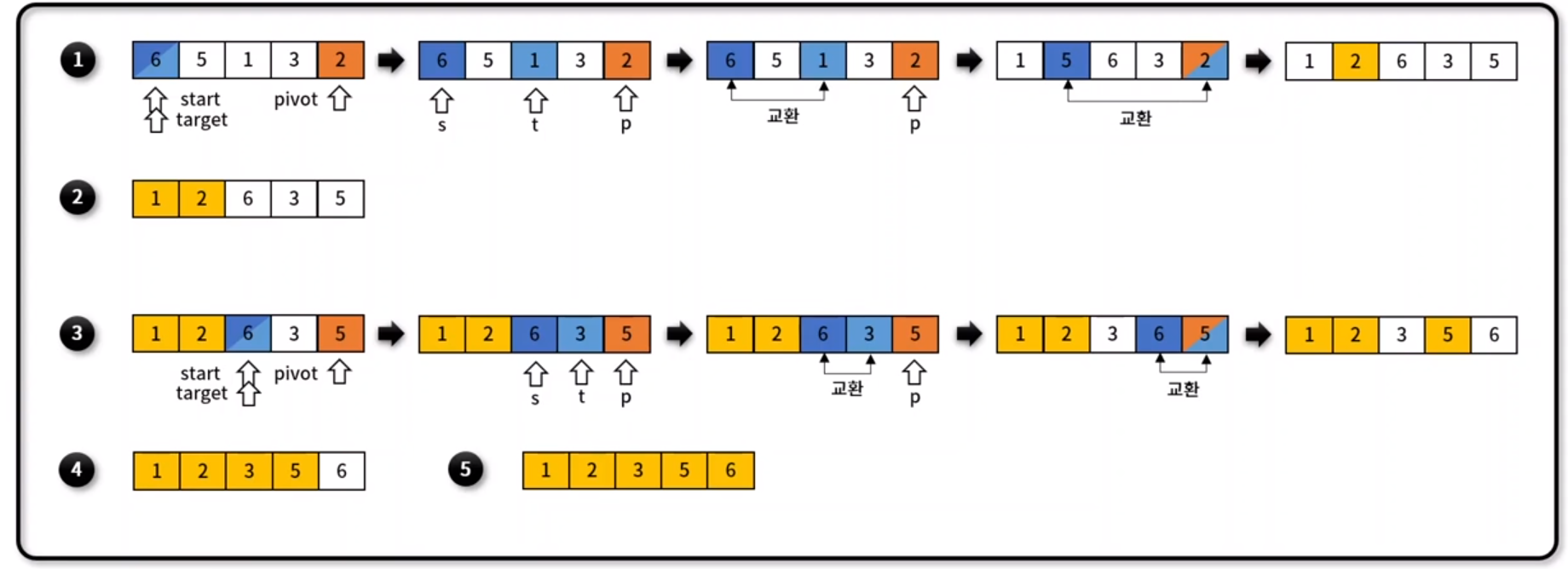 위의 알고리즘 동작 방식은 가장 이해하기 쉽고 심플한 Qsort이다.