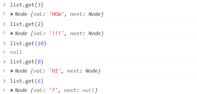 get메서드는 인덱스 혹은 위치를 의미하는 수를 인자로 받아서 주어진 위치에 있는 노드를 반환하는 메서드.