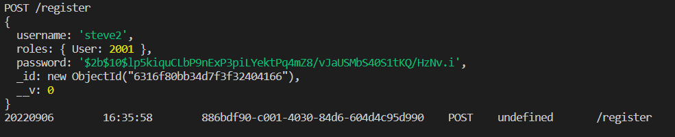 - 에러 해결 후 다시 Thunder Client로 회원가입 테스트를 해보니 제대로 연결된 것을 볼 수 있다.