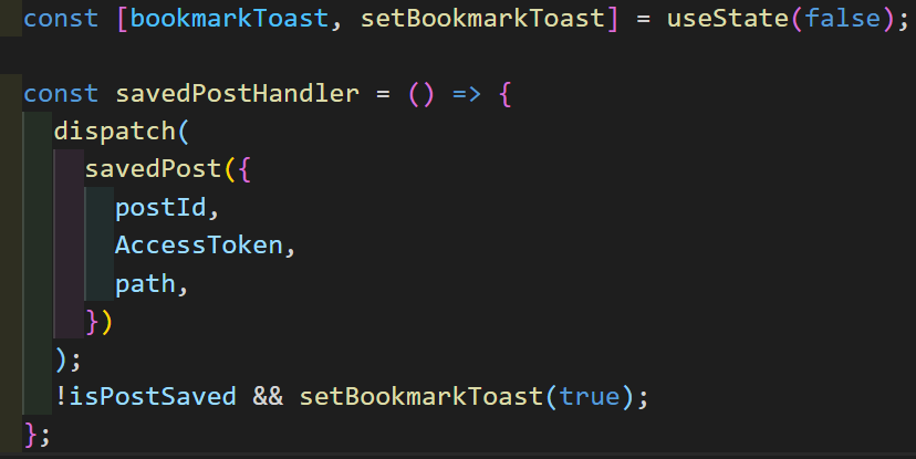 북마크 저장하는 온클릭 핸들러에, 북마크가 눌려있지 않다가 눌릴 때만 toast를 띄워주게 했고