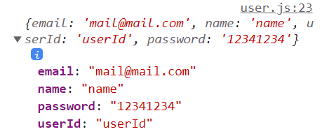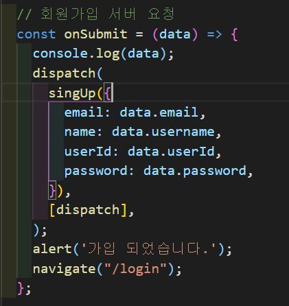 나머지 name, userId, password도 같은 형식으로 받아와서