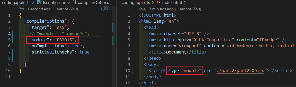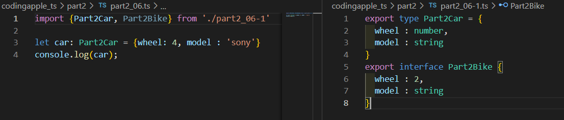 문제 정의 : 코딩애플 Ts 강의 import/export 파트 따라 하는데 발생.