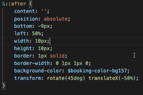 5. 그리고선 transform: rotate(45 deg)로 해당 박스를 45도 꺾어서 화살표 모양으로 만들어 준 후,