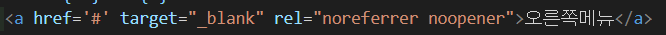 • a태그 target에 _blank(새 창에서 열기)를 적용할 경우 보안 위험이 있으니 항상 target="_blank"rel="noreferrer noopener"를 같이 설정해주어야 함.