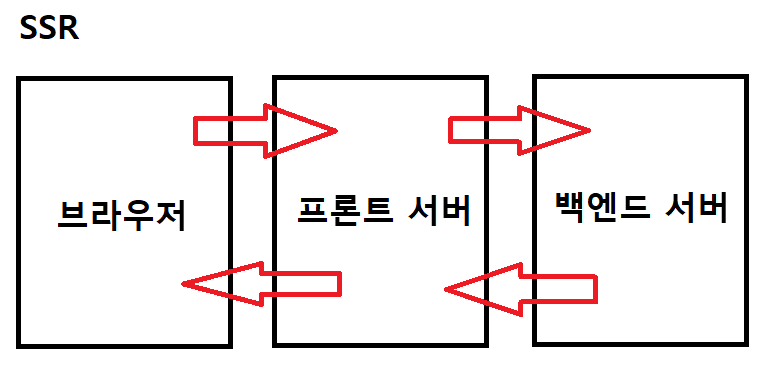 브라우저 -> 프론트 서버 -> 백엔드 서버 -> 프론트 서버 -> 브라우저