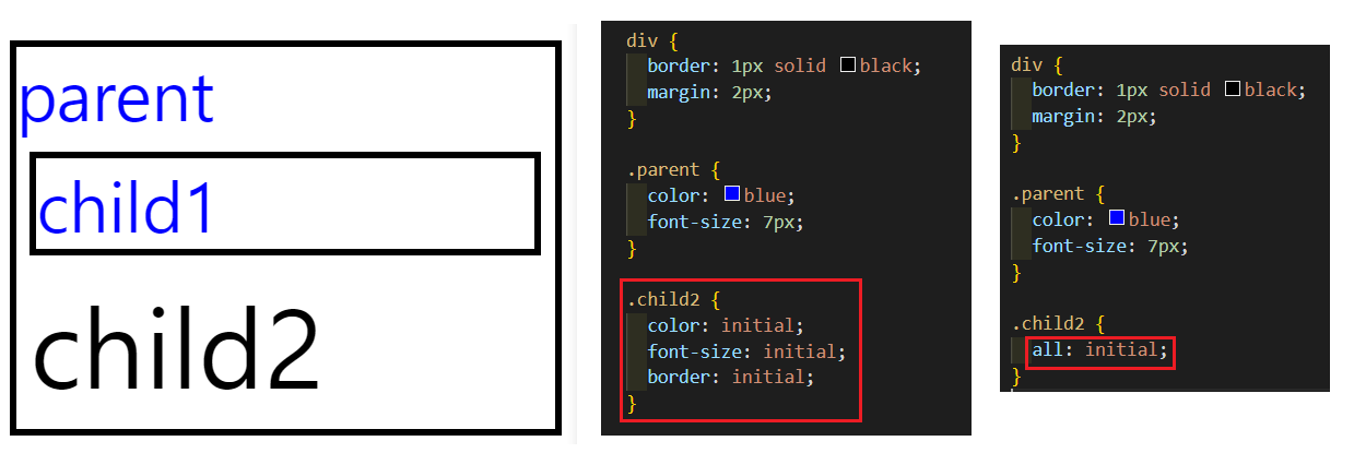 각 스타일 속성에 initial을 적용할 경우, 상속이 제어된다.
