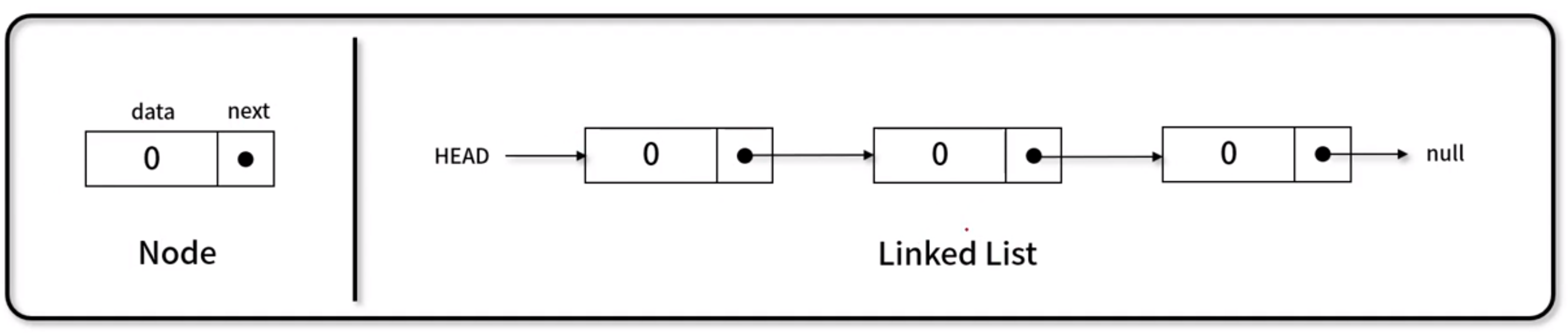 - 각 노드가 데이터와 포인터를 가지며, 한 줄로 연결되어 있는 방식으로 데이터를 저장하는 자료 구조