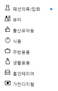 ๋ด๊ฐ ๊ตฌํํ Icon Font๋ ์ฟ ํก ์ฌ์ดํธ ์นดํ ๊ณ ๋ฆฌ์ ์ผ๋ถ๋ถ์ผ๋ก, ๊ฐ ์นดํ ๊ณ ๋ฆฌ์ ๋งจ ์ผ์ชฝ ์ด๋ฏธ์ง๋ค์ด icon font ์ธ ๊ฒ!!