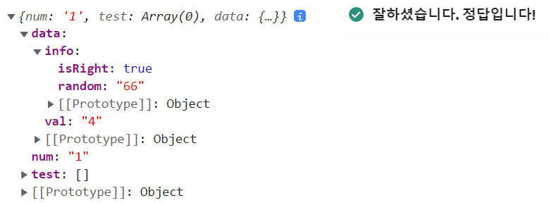 test의 array(0)가 사라졌고, info안의 isRight이라는 prosperity도 사라졌음. 당연히 오답.