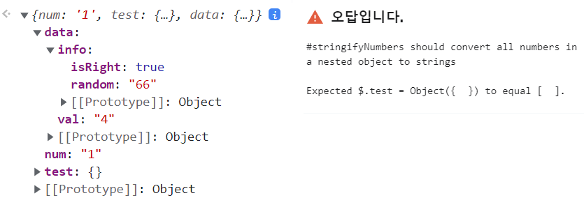 콘솔상으로는 nested object 안의 모든 숫자들을 string으로 변환한 것 같은데,