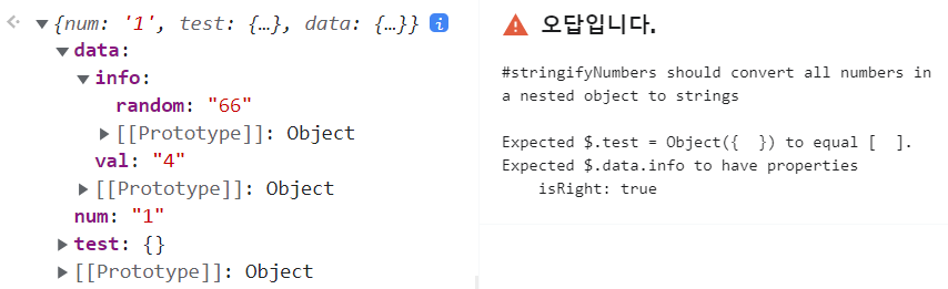 object 또는 number가 아닐 때의 예외처리를 안 해주긴 했는데 그것이 문제이려나?