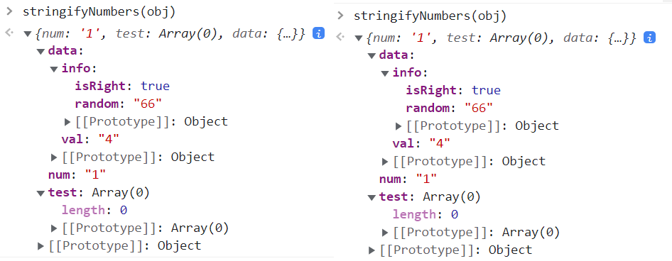 stringifyNumbers : 모든 values들의 numbers를 strings으로 변환하는 문제.