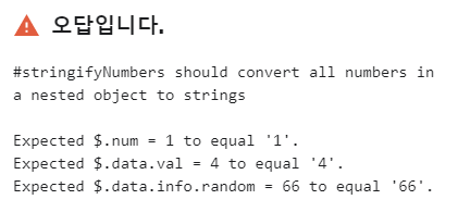 stringifyNumbers : 모든 values들의 numbers를 strings으로 변환하는 문제.
