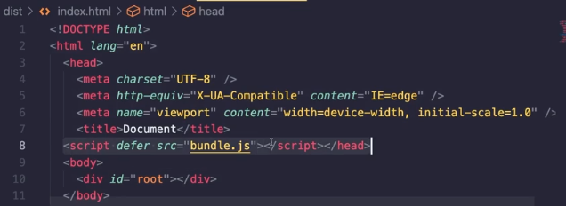 과정을 잠깐 보면 webpack.config.js에서 dist라는 폴더 안에 bundle.js라는 파일을 생성하고 실행하면,