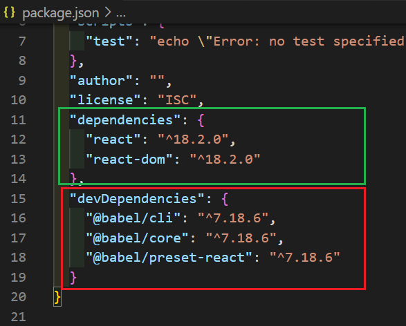 -D를 해주면 설치한 패키지들이 아래의 빨간 박스처럼 devDependencies에 추가된다.