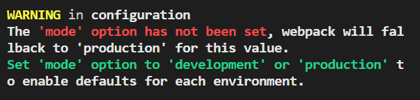 webpack.config.js 파일에 mode 옵션을 추가해주면 에러가 해결된다.