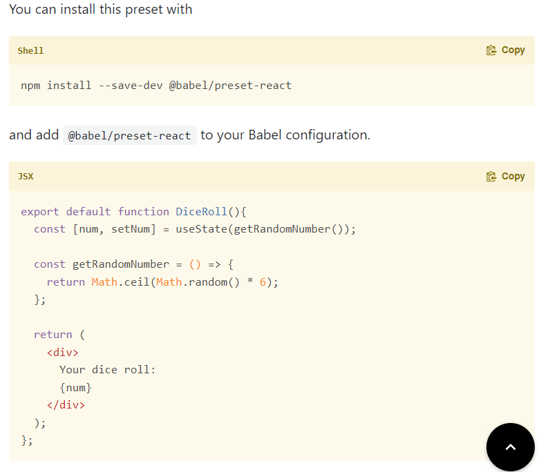 @babel/preset-react : react 관련 코드들을 compile 해준다.