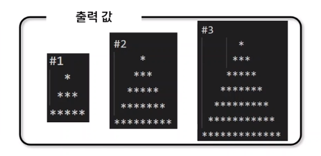 하나의 반복문 안에서 1. 중첩으로 공백을 위한 로직, 2. 별을 위한 로직을 따로 작성해야 한다.