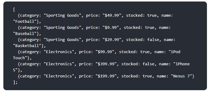 react 공식 문서의 mock data를 사용해보자.