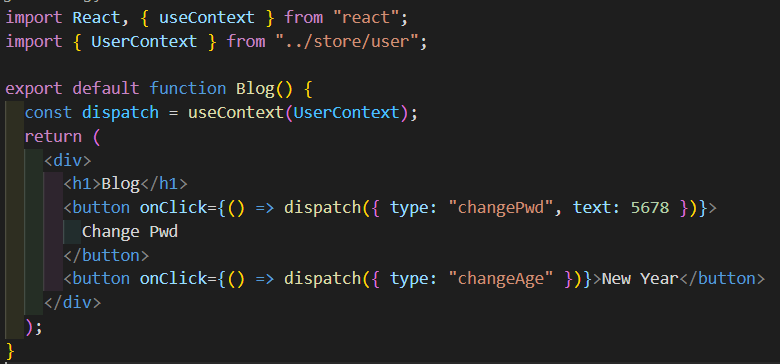 button태그를 추가하여 클릭 핸들러에 dispatch를 넣어 실행시킨다.