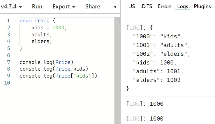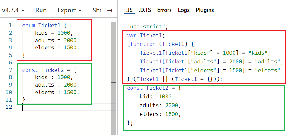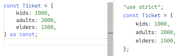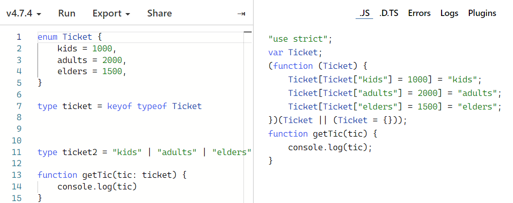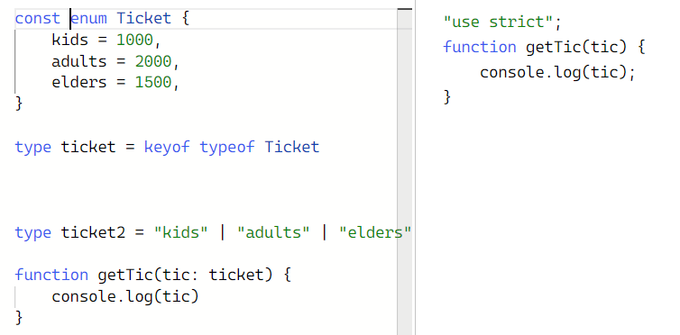또는 const enum 대신 union types을 사용해서 깔끔한 코드를 컴파일되도록 할 수도 있다.
