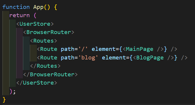 App 컴포넌트에 가서 전역에서 상태 관리를 할 수 있도록 UserStore로 전체를 감싼다.