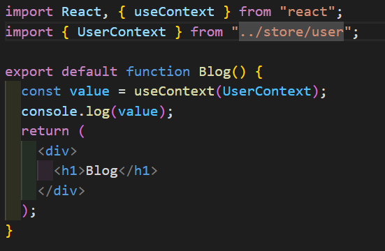 - useContext 훅과 데이터를 넘겨받을 UserContext를 import 하고