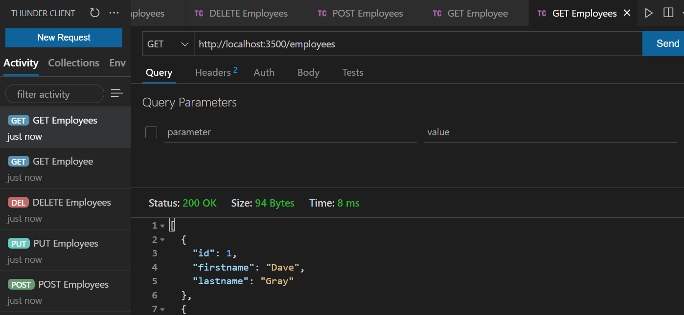 - 에러 해결 후 다시 Thunder Client로 회원가입 테스트를 해보니 제대로 연결된 것을 볼 수 있다.