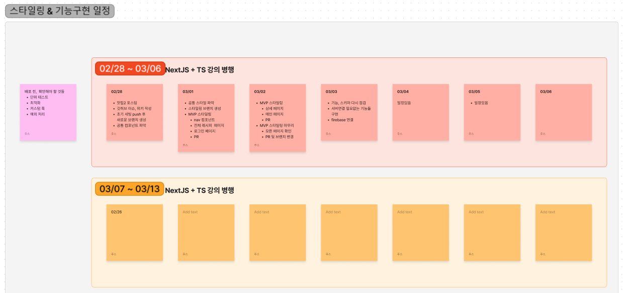 지난번의 워드 클라우드 구체화, 스토리 보드 및 레퍼런스 등을 참고로 해서 스타일링해야 할 스케치와 대략적인 기능들을 피그잼에 작성했다.