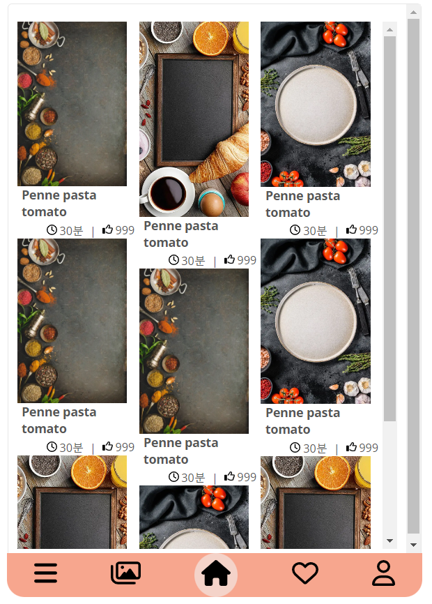 내가 상상했던 전체 레시피 페이지의 레이아웃!!! 검색하고 나니 이미 핀터레스트의 레이아웃은 유명했고 나만 몰랐다는...!