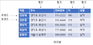 - 레코드-테이블-데이터베이스로 이루어져 있다.