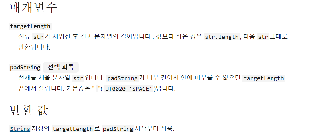 ※ 참고 : https://developer.mozilla.org/en-US/docs/Web/JavaScript/Reference/Global_Objects/String/padStart