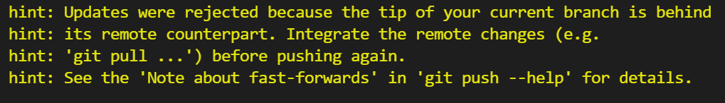 다시 초기화하고 remote 한 후에 add, commit, push 하였더니 아래의 error가 발생.