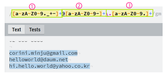 ※ 정규표현식 연습용 사이트 : https://regexr.com/5mhou