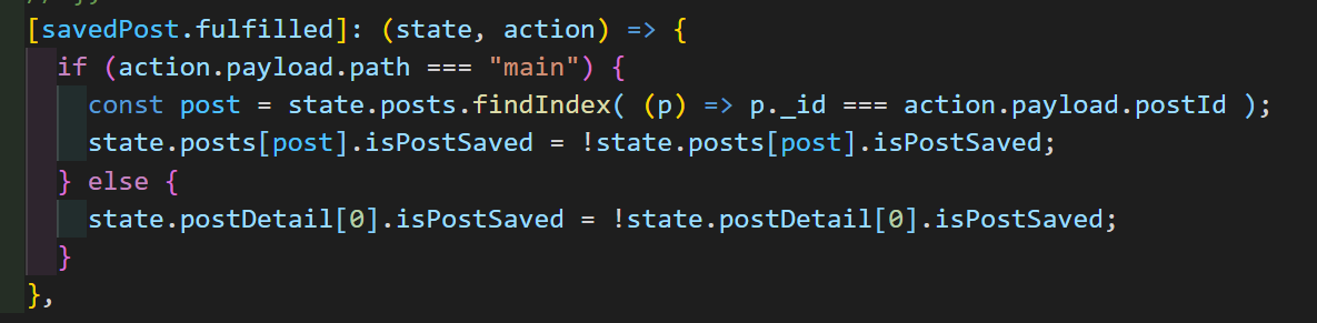만약 메인 페이지 라면 (path가 main이면) 액션을 생성했을 때 posts 안의 isPostSaved를 불러오고,